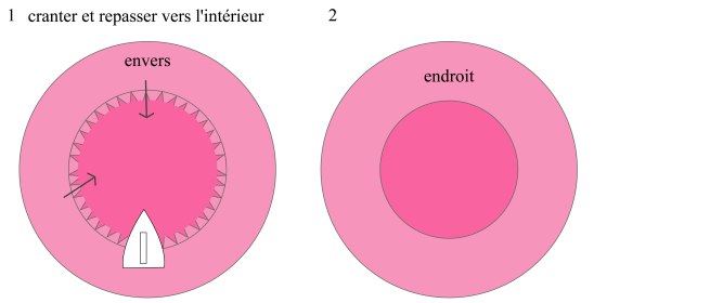 Schéma 2 : Retourner et repasser, surpiquer à 2 mm du bord